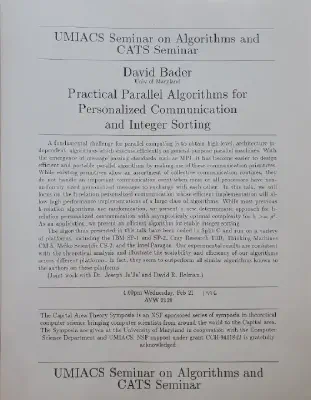 A fundamental challenge for parallel computing is to obtain high-level, architecture independent, algorithms which execute efficiently on general-purpose parallel machines. With the emergence of message passing standards such as MPI, it has become easier to design efficient and portable parallel algorithms by making use of these communication primitives. While existing primitives allow an assortment of collective communication routines, they do not handle an important communication event when most or all processors have non-uniformly sized personalized messages to exchange with each other. In this talk, we will focus on the h-relation personalized communication whose efficient implementation will allow high performance implementations of a large class of algorithms. While most previous h-relation algorithms use randomization, we present a new deterministic approach for h-relation personalized communication with asymptoticaly optimal complexity for h >= p^2. As an application, we present an efficient algorithm for stable integer sorting. The algorithms presented in this talk have been coded in Split-C and run on a variety of platforms, including the IBM SP-1 and SP-2, Cray Research T3D, Thinking Machines CM-5, Meiko Scientific CS-2, and the Intel Paragon. Our experimental results are consistent with the theoretical analysis and illustrate the scalability and efficiency of our algorithms across different platforms. In fact, they seem to outperform all similar algorithms known to the authors on these platforms. (Joint work with Dr. Joseph Ja’Ja’ and David R. Helman.)