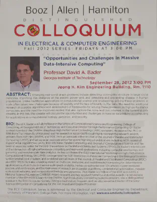 Booz Allen Hamilton Distinguished Colloquium in Electrical and Computer Engineering, University of Maryland: Opportunities and Challenges in Massive Data-Intensive Computing