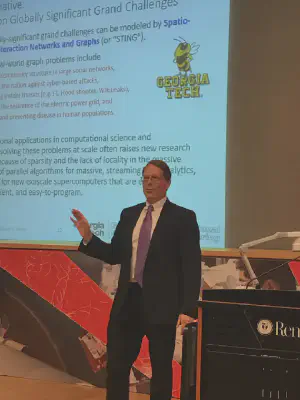 Emerging real-world graph problems include: detecting community structure in large social networks; improving the resilience of the electric power grid; and detecting and preventing disease in human populations. Unlike traditional applications in computational science and engineering, solving these problems at scale often raises new challenges because of the sparsity and lack of locality in the data, the need for additional research on scalable algorithms and development of frameworks for solving these problems on high performance computers, and the need for improved models that also capture the noise and bias inherent in the torrential data streams. In this talk, the speaker will discuss the opportunities and challenges in massive data-intensive computing for applications in computational science and engineering.