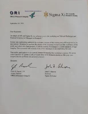 On behalf of ORI and Sigma Xi, we welcome you to this workshop on “Ethical Challenges and Practical Solutions for Managers in Research.”