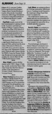 David A. Bader, an assistant professor of computer engineering at UNM’s Electrical and Computer Engineering Department, received The Institute of Electrical and Electronics Engineers Outstand Young Engineering Award 2000 from the UNM chapter of the IEEE.