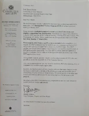 The IEEE Computer Society is pleased to announce that you have been selected to participate in the Distinguished Visitors Program (DVP) for a three-year term starting in January 2003.