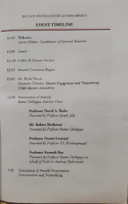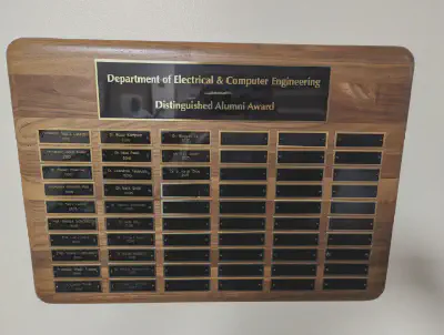 In 2011, The University of Maryland’s Department of Electrical and Computer Engineering established the Distinguished Alumni Award to recognize alumni who have made significant and meritorious contributions to their fields. Alumni are nominated by their advising professors or the department chair, and the Department Council then approves their selection. In early May, the faculty and staff gather to honor the recipients at a luncheon.