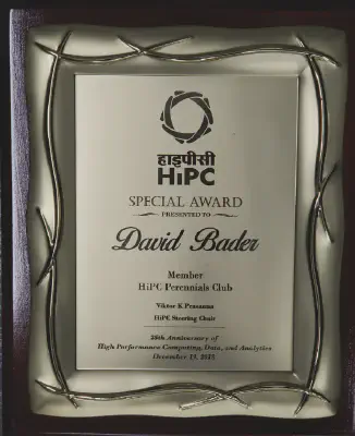 HiPC Special Award presented to David Bader, Member, HiPC Perennials Club