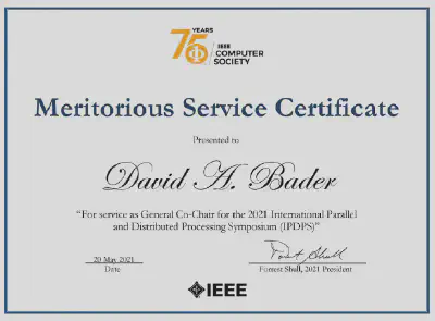 Citation: “For service as General Co-Chair for the 2021 International Parallel and Distributed Processing Symposium (IPDPS).”