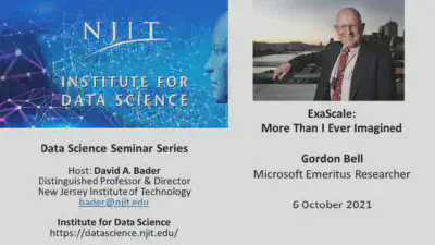 New Jersey Institute of Technology’s Institute for Data Science is holding a virtual seminar with presenter Gordon Bell, Ph.D., Microsoft Emeritus Researcher, titled “Exascale: More than I ever imagined.”
