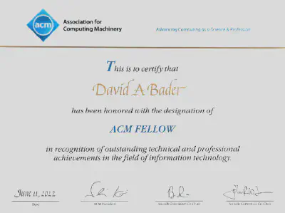 Bader receives ACM Fellow at ACM Awards BanquetJun 11, 2022 1 min readDavid A. Bader with 2021 A.M. Turing Award recipient Jack Dongarra.David A. BaderDistinguished Professor and Director of the Institute for Data ScienceDavid A. Bader is a Distinguished Professor in the Department of Computer Science at New Jersey Institute of Technology.